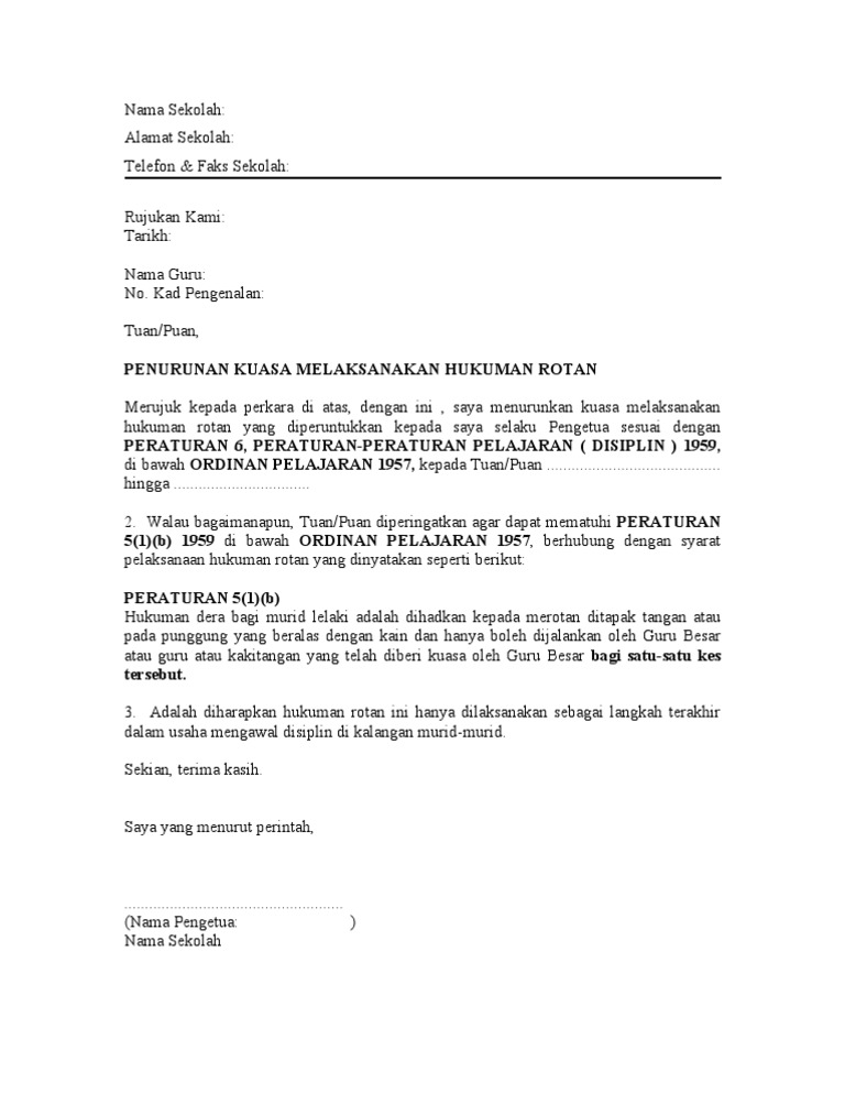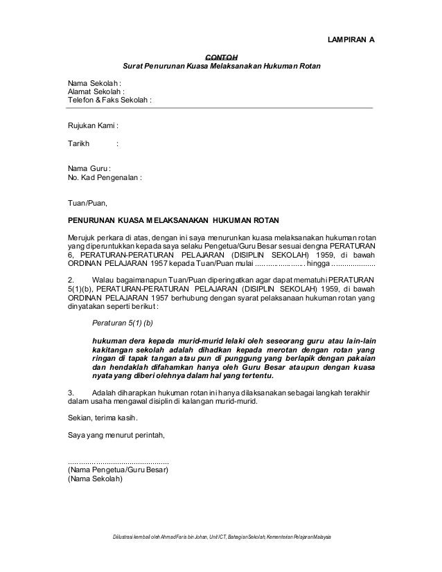 Smk bandar jalan padi. 2sehubungan dengan itu sukacita dimaklumkan bahawa saya sebagai guru besar. Lampiran a contoh surat penurunan kuasa melaksanakan hukuman rotan nama sekolah.