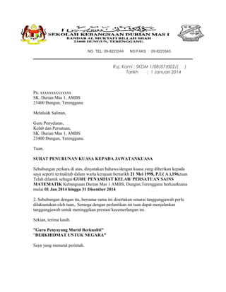 Contoh Surat Penurunan Kuasa Kewangan Sekolah