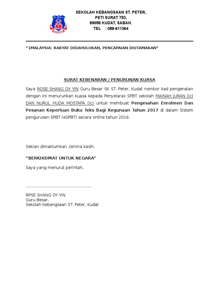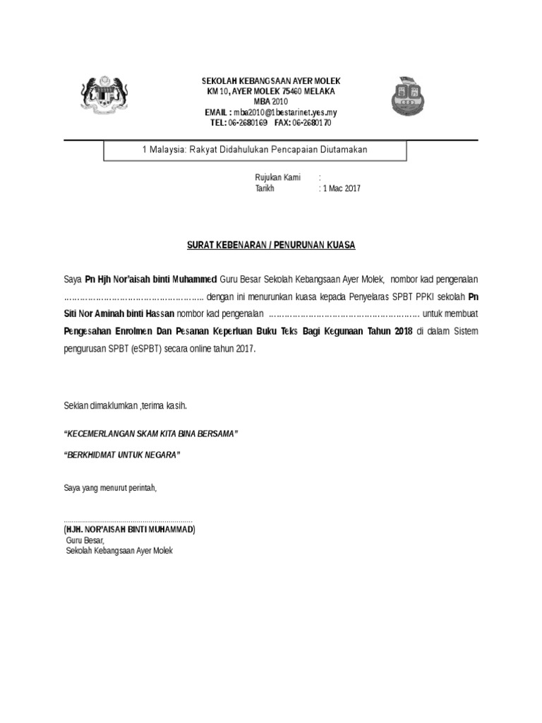 Lampiran 11 contoh surat penurunan kuasa pengetua. Buku Rekod Kehadiran Murid Surat kebenaran. Bisa anak adik kakak keponakan paman atau orang tua.